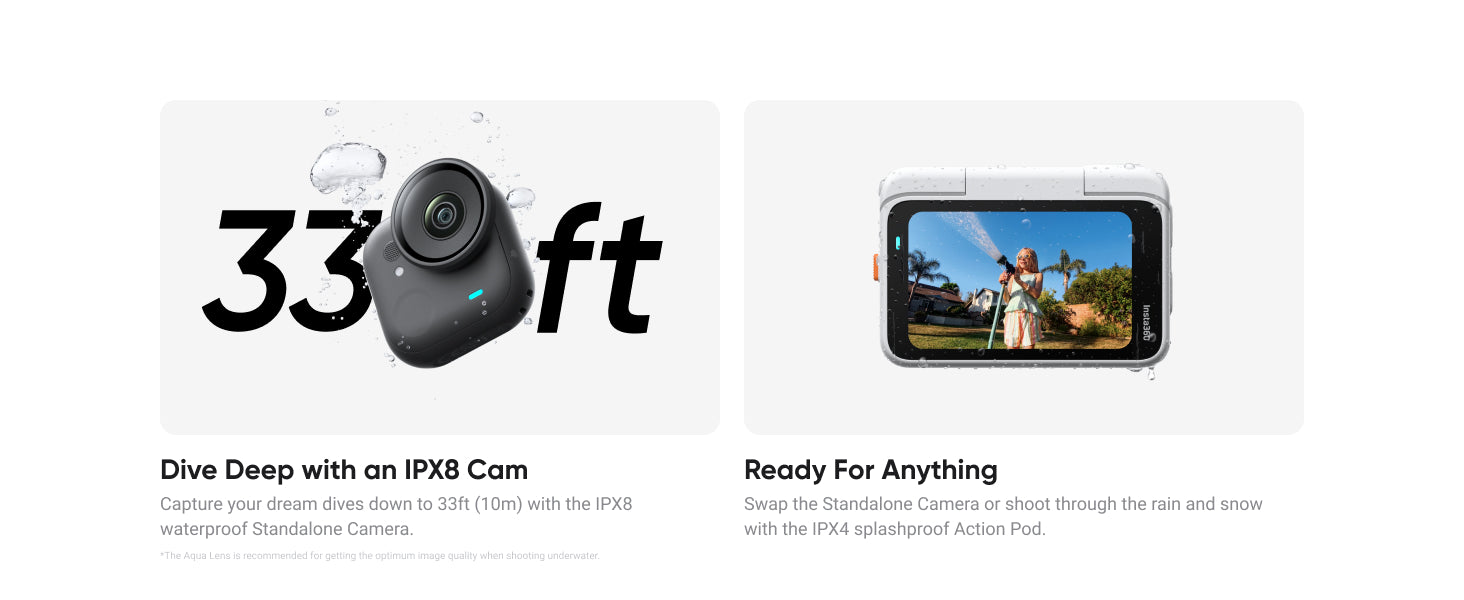 Compact, versatile and powerful, the Insta360 GO Ultra Standard Bundle is your go-to action cam for capturing immersive POV shots, vlogging, or any high-motion adventure. With stunning 4K/60fps video, a magnetic body that mounts anywhere, and a detachable Action Pod that doubles as a remote and screen, you get creative freedom without carrying bulky gear. Whether you're on a bike ride, exploring, or just shooting daily moments, this bundle makes capturing smooth, dynamic footage effortless.