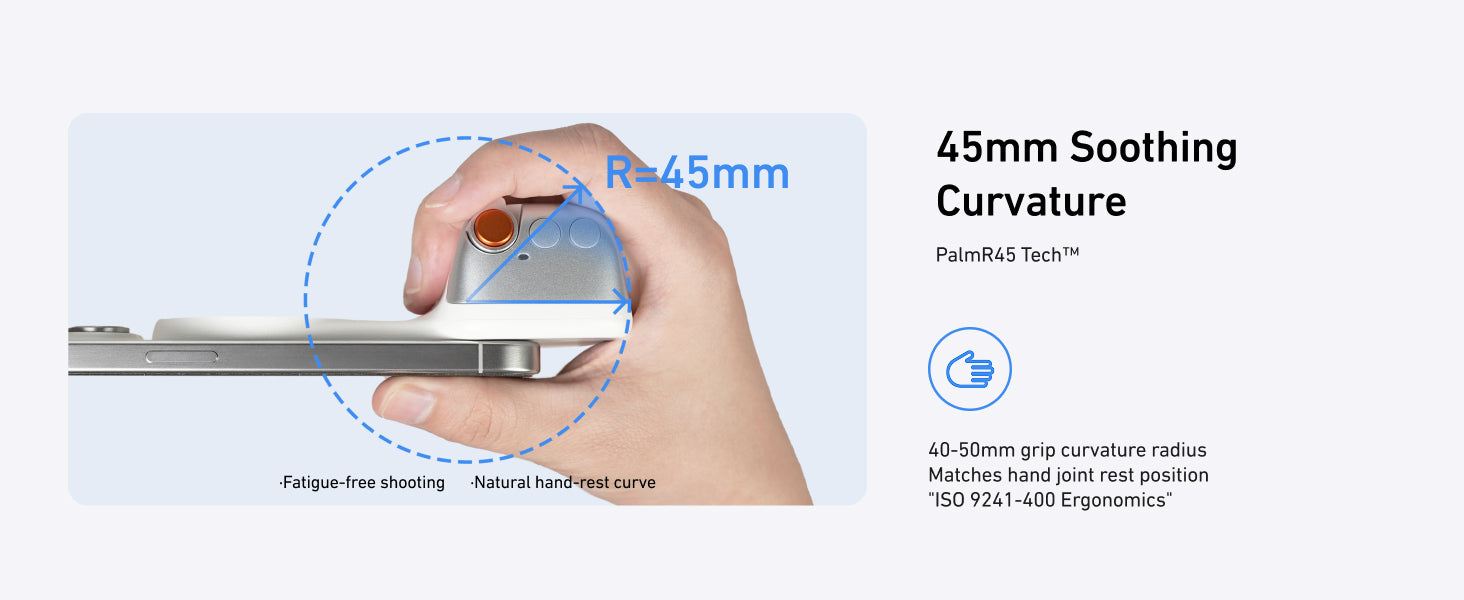 Wireless freedom at your fingertips: the grip features a detachable Bluetooth remote with up to 10 m (32.8 ft) range, letting you trigger photos or start video recording without touching the phone screen.
